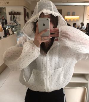 러블리 도트 시스루 프릴 후드집업 바람막이