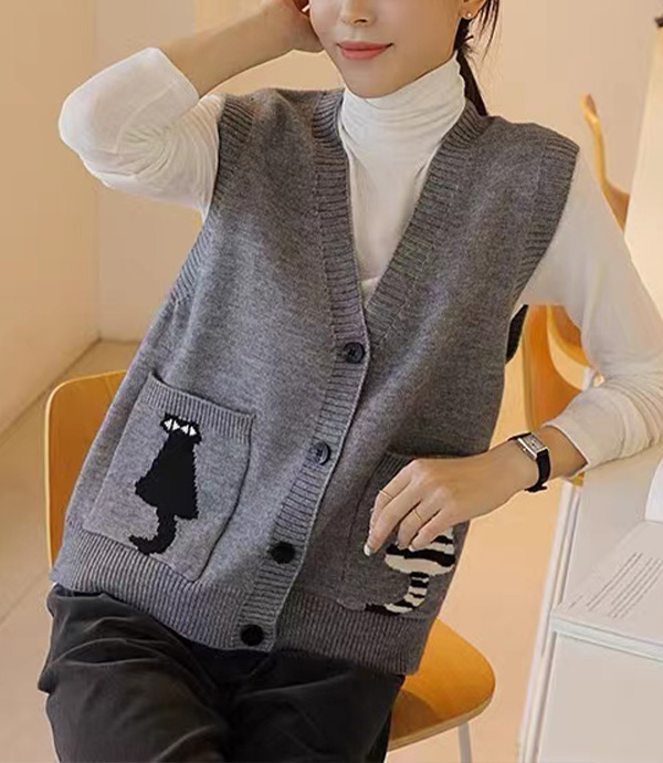[★무료배송★] 냥이 패치 브이넥 니트 가디건