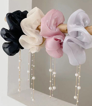 샤랄라 진주드롭 곱창헤어끈 4개세트