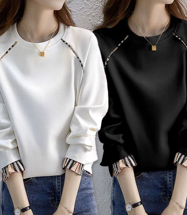 [명품스타일] 체크레이어드 긴팔 맨투맨 티셔츠