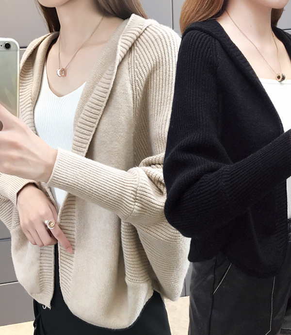 루즈 숄카라 후드 가디건